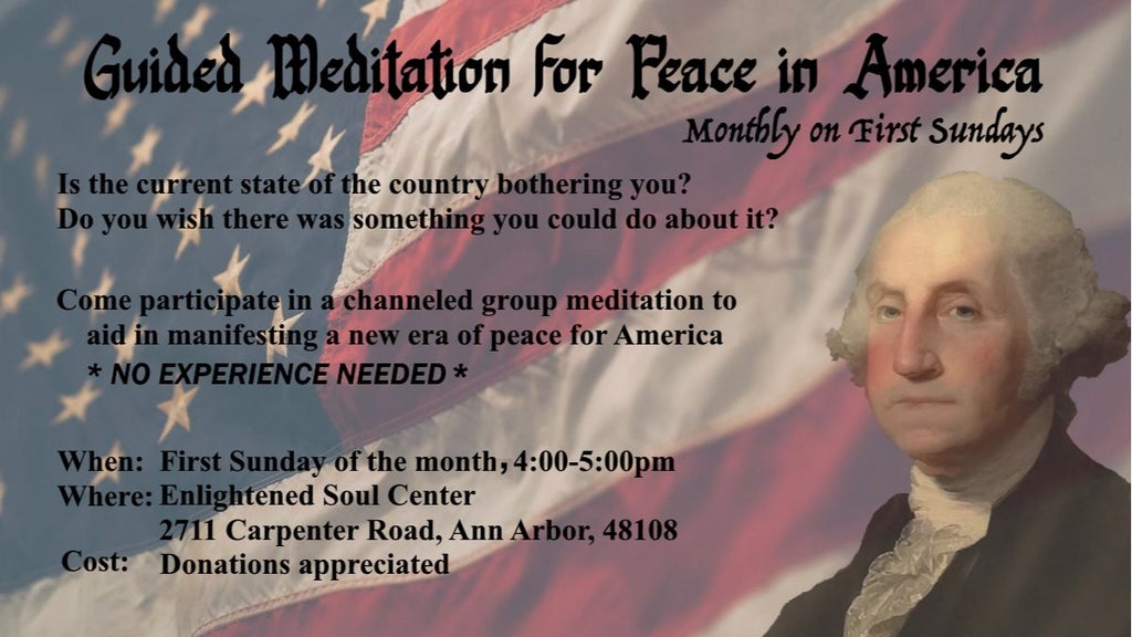 Is the current state of society and the country bothering you? Do you wish there was something you could do about it? Come and participate in a group peace meditation, guided by the Ascended Master George Washington (channeled by Kylie Joki), to aid in manifesting a new era of peace for America’s 250th birthday.